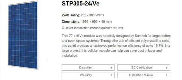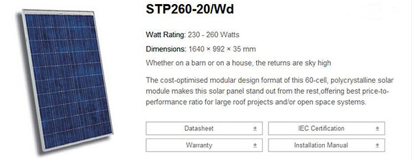太陽(yáng)能光伏發(fā)電最基本原件是太陽(yáng)能電池片,選擇光伏組件至關(guān)重要!常州常能光伏所采用的組件為世界頂尖品質(zhì)組件提供商為合作伙伴,電池片光伏轉換效率高,單塊的組件功率更高,因此保證了光伏系統高效的發(fā)電效率。以下是幾種基本組件的參數介紹